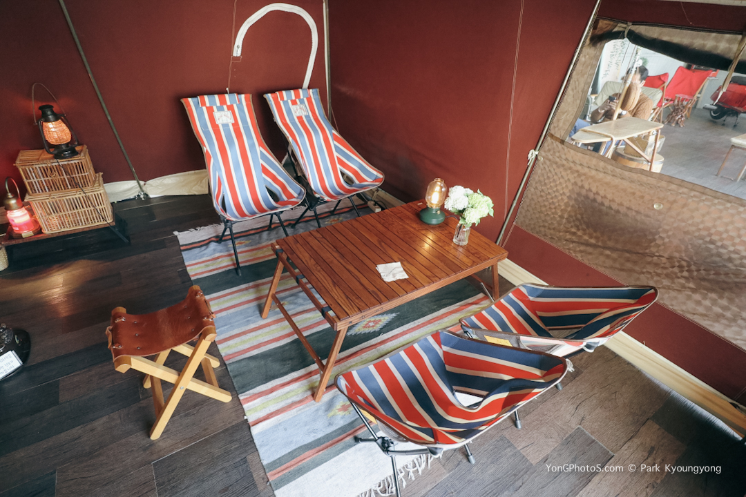 ‘클래식 캠퍼’는 크게 세구역으로 나뉘어져 있다. 캠핑 용품을 직접적으로 구입할 수 있고, 빈티지 랜턴 등의 고가의 전시품이 있는 Camping Shop, 캠핑용품을 간접적으로 체험해 볼 수 있고 카페에서 구입한 음료를 마셔도 괜찮은 Select Shop, 그리고 Cafe… 여기서 캠핑샵은 노키즈존이다. 개인적으론 셀렉트샵에서 헬리녹스 체어에 앉아 잠시나마 캠핑을 하고 있는듯한 기분이 들었던 시간이 가장 좋았다.